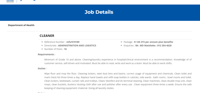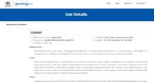 NB: For assistance with online applications please email your query to e-recruitment@gauteng.gov.za.