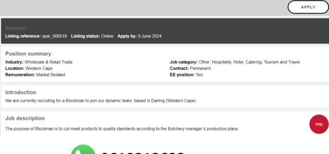 Kindly note: All applications are to be submitted through the Careers Site and Pnet. Please refrain from calling the Distribution Centre (DC) or emailing applications directly.