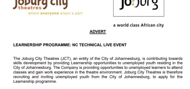 Joburg City Theatres Learnerships Programme 2025 – Apply Now!