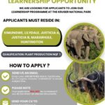 LEARNERSHIP PROGRAMME OPPORTUNITY AT KRUGER NATIONAL PARK 2023/24 We are looking for applicants to join our Poultry Production NQF 1 Learnership Programme [Applications Close: 20 October 2023] Applicants must reside in Ximungwe, Lilydale, Justicia A, Justicia B, Mabarhule, Huntington Requirements: Matric Certificate South African ID Email your Matric Certificate, ID & CV copies, to […]