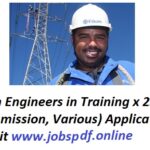 Eskom Engineers in Training x 23 (Transmission, Various) Application Task Grade : L07 Area of Speacialization : Various Department : Various Business Unit : Various Location : Various Reference Number : 5001312249 Closing Date : 2023/10/12 Minimum Requirements Qualification(s): • B Eng./Bsc. degree in Electrical Engineering • B Eng. /Bsc. Degree in Electro-Mechanics • B Eng./Bsc. degree in Civil Engineering • […]